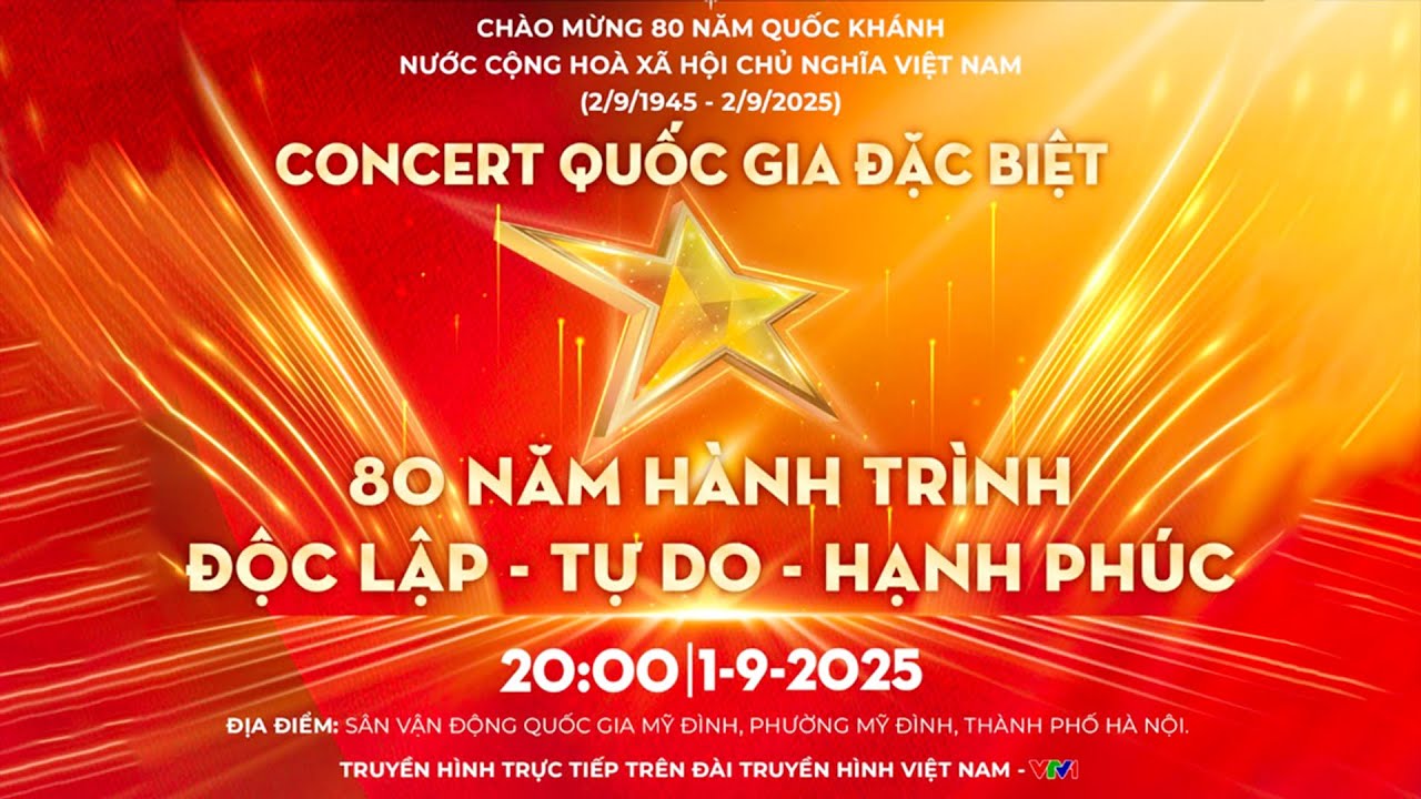 Một đêm hội lớn của non sông đất nước đã chính thức diễn ra vào tối 1/9/2025 tại Sân vận động Quốc gia Mỹ Đình, Hà Nội. Concert quốc gia đặc biệt “80 năm hành trình Độc lập – Tự do – Hạnh phúc” chính thức diễn ra tại SVD Mỹ Đình vào lúc 20 giờ.