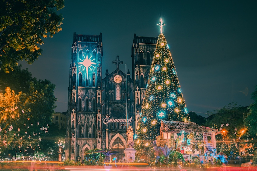 Các Nhà thờ Công giáo lớn luôn là trung tâm của mùa Giáng sinh, mang lại cảm giác thiêng liêng và không khí lễ hội đậm đặc.
